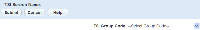 Select the TSI Group Code applicable to the fields you want apply to the new TSI Screen Name. The TSI Screen Name might be a name to easily identify the fields or functions of the TSI Group Code.